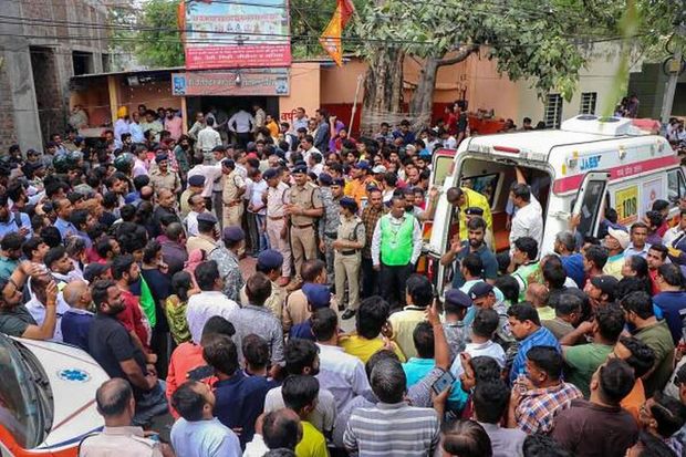 Как сообщает полиция, около 25 верующих упали в колодец, предназначенный для религиозных ритуалов, когда покрывавший его настил обрушился под весом скопившихся людей.