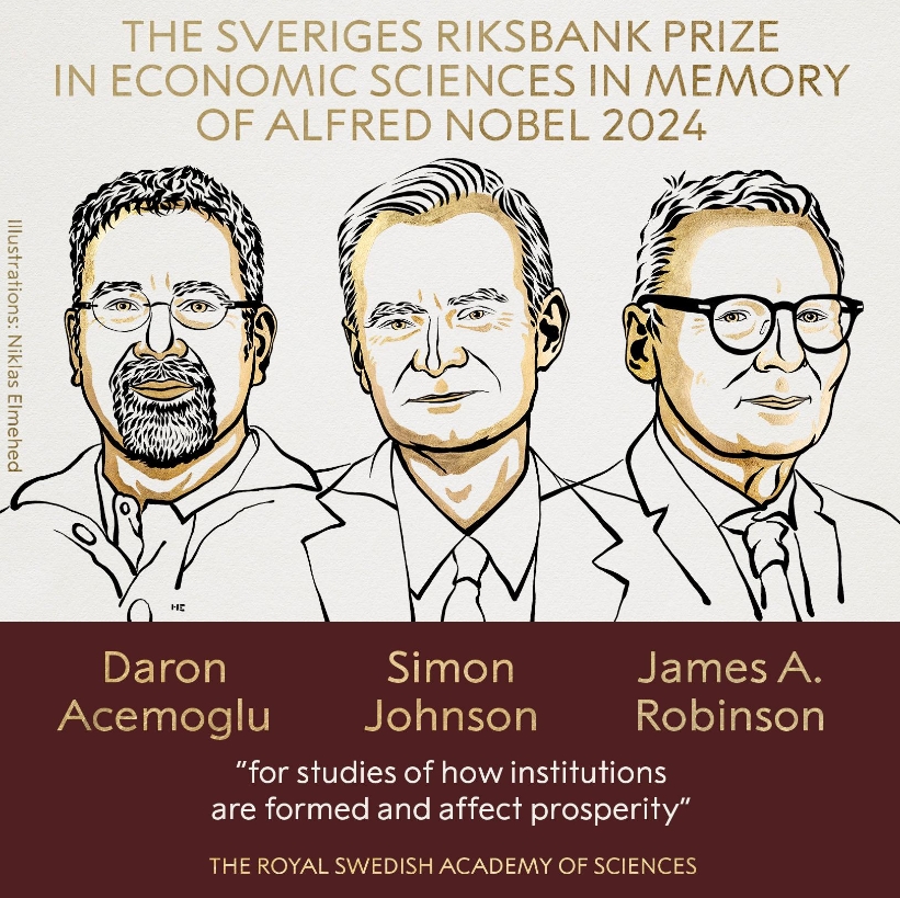 Нобелевская премия по экономике за изучение влияния общественных институтов на развитие стран присуждена Дарону Аджемоглу, Саймону Джонсону и Джеймсу Робинсону.