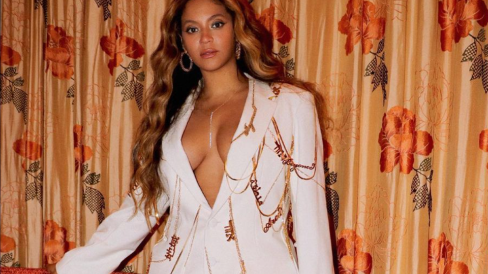 Американская певица Бейонсе опубликовала на своей странице в Instagram фотографии нового наряда. Для фотосессии певица выбрала белый брючный костюм с откровенным вырезом, украшенный золотыми цепями.