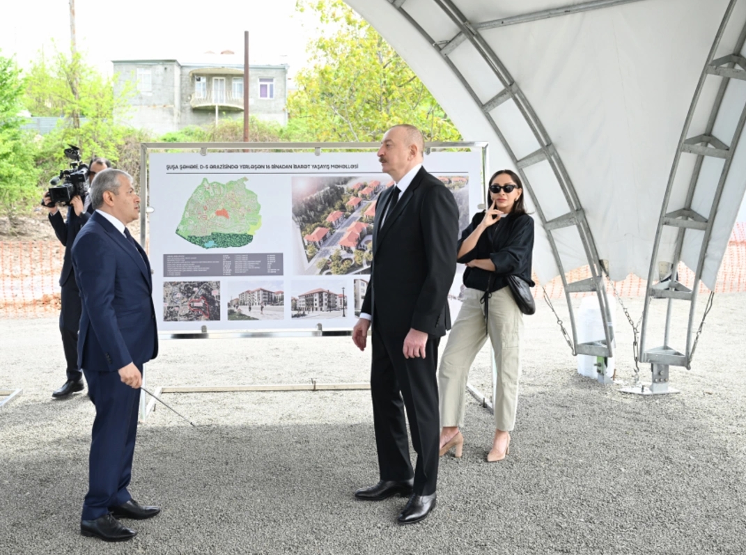 9 мая Президент Азербайджанской Республики Ильхам Алиев и первая леди Мехрибан Алиева приняли участие в церемонии закладки фундамента четвертого жилого комплекса, который будет построен в Шуше.